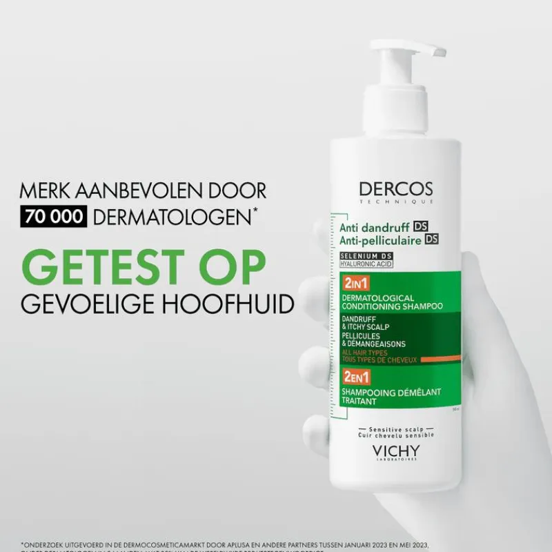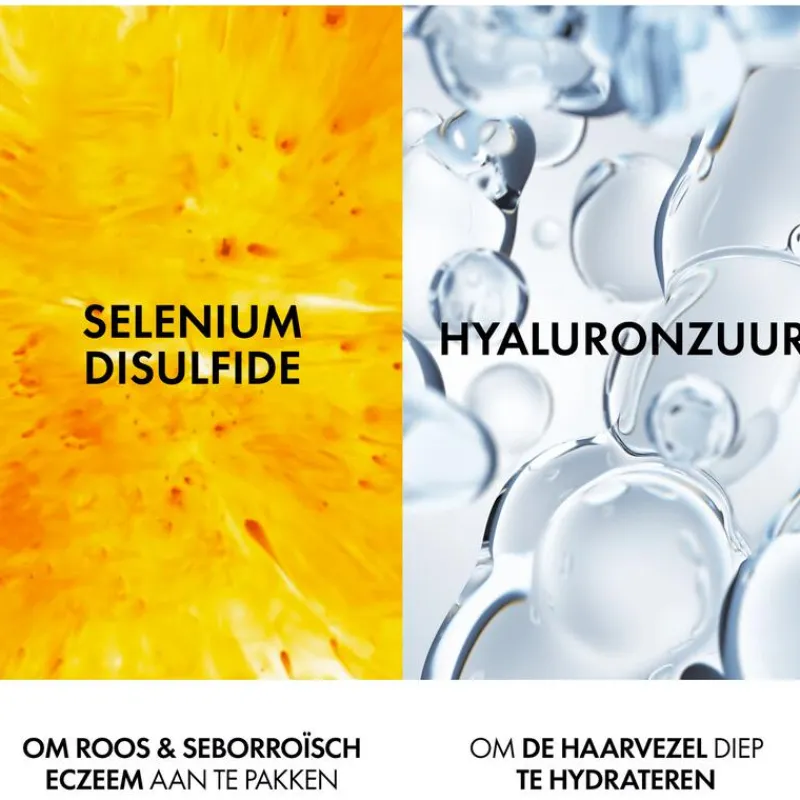 Vichy Dercos Technique 2-in-1 Anti-roos Shampoo + Conditioner combineert een anti-roos en anti-jeuk werking met een hydraterende verzorging die het haar helpt te ontwarren. Het is zowel een verzorgende shampoo als een ontwarrende conditioner die de hoofdhuid zacht en glanzend maakt. Het bevat seleniumdisulfide, een actief ingrediënt dat van bij het eerste gebruik roos verwijdert en terugkeer voorkomt. Het microbioom wordt terug in evenwicht gebracht, waardoor het probleem bij de bron wordt aangepakt. Hyaluronzuur zorgt voor een diepe hydratatie. Het haar is zachter en gemakkelijker te ontwarren.