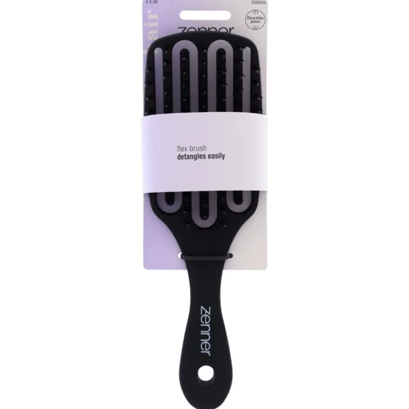 Dankzij deze innovatieve haarborstel heb je nooit meer last van haarbreuk of onverslaanbare klitten. Met flexibele nylon pennen en een buigzame kop haalt deze borstel moeiteloos elke klit uit je haar, zonder het te beschadigen. De flexibele pennen zijn afgewerkt met een klein, antistatisch bolletje dat zacht is voor je haar en huid. De zachte nylon borstelharen die om de pennen zitten, laten jouw haar extra glanzen. Gebruik de borstel op elk haartype, zelfs breekbaar of nat haar.