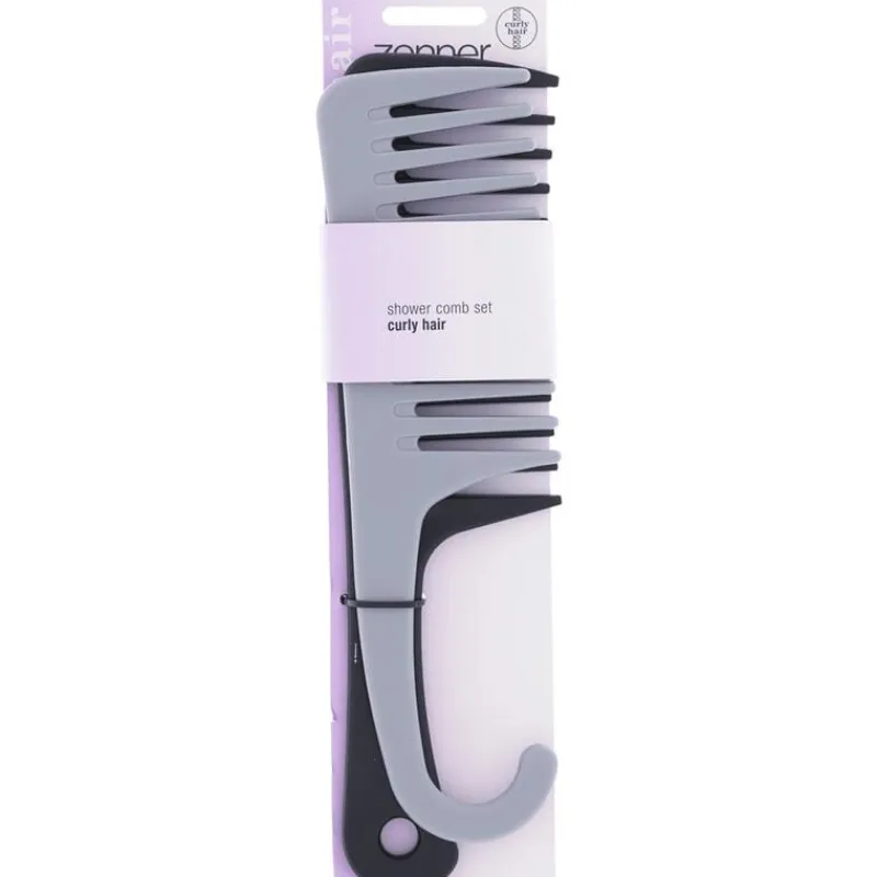 Dit dynamische duo van Zenner kammen is alles wat je nodig hebt om jouw krullende haar te ontwarren en stylen. Met de wijde tanden verwijder je makkelijk en pijnloos klitten uit je haar, zonder het te beschadigen. Gebruik de kam met het handige ophanghaakje om tijdens het douchen de shampoo of conditioner perfect over je krullen te verdelen. Dankzij het handvat kun je hem altijd binnen handbereik hangen. Met de andere kam style je moeiteloos jouw krullen, welk kapsel je ook maakt.