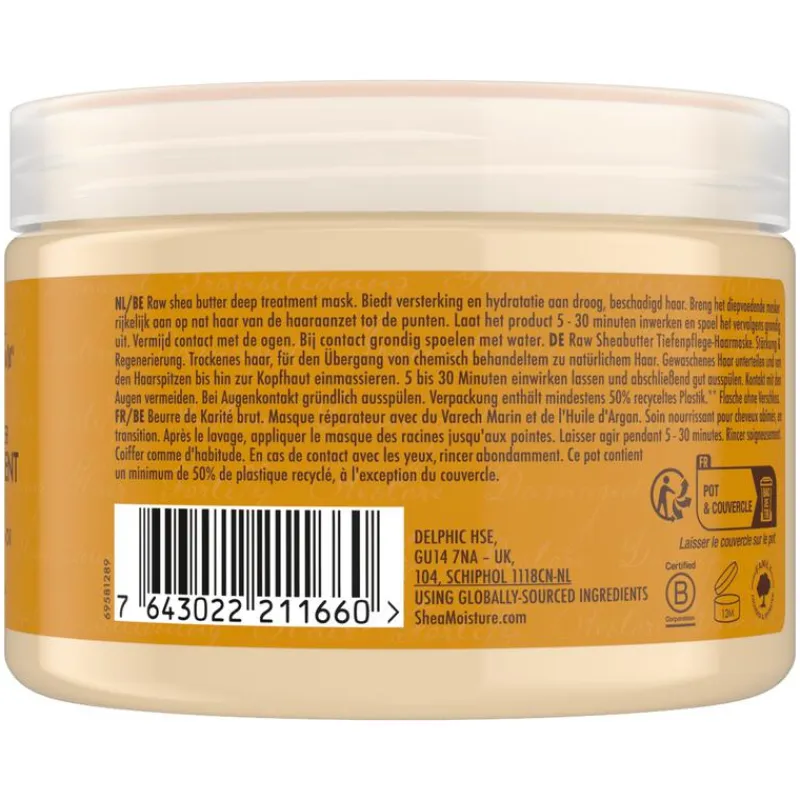 Diep verzorgend masker met raw shea butter voor extra voeding en soepelheid van het haar.