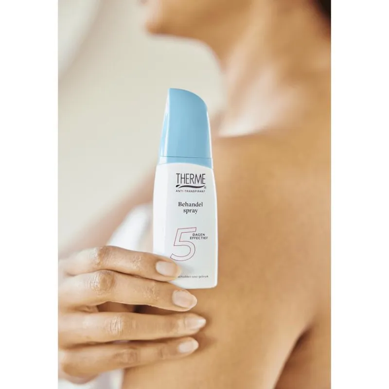 Door de effectieve werking van de Therme 5 dagen Behandelspray hoef jij je geen zorgen te maken over overmatig zweten en zweetgeur en kom jij ontspannen de dag door.
