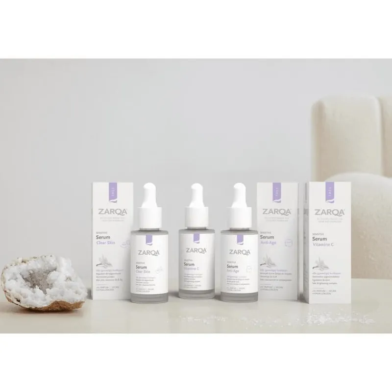 ZARQA Serum Anti-Age met mineralencomplex maakt de huid glad en vermindert rimpels. Het kalmeert en heeft een herstellende werking. Het antirimpelcomplex met polypeptiden bevordert zichtbaar de kwaliteit van de huid door de diepte van rimpels te verminderen en de huidteint en elasticiteit te verbeteren. Het serum met een lichtgewicht textuur trekt snel in tot diep in de huidlagen.