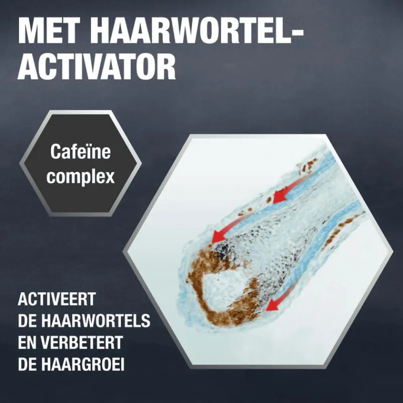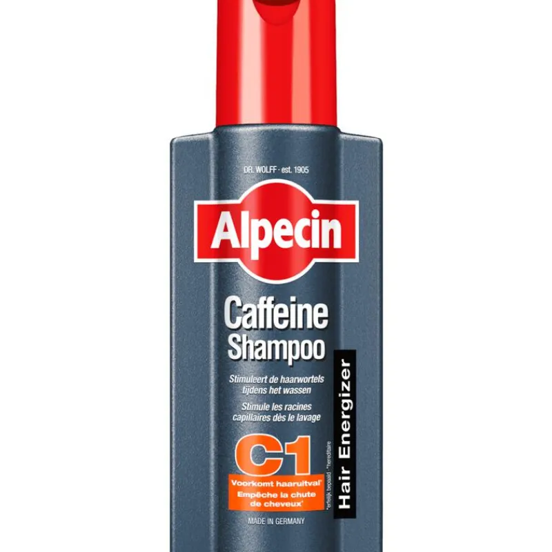 De shampoo die de haargroei direct in de wortels stimuleert. Het werkzame cafeïne-complex gaat actief haaruitval tegen. Tijdens het wassen van het haar zal de cafeïne doordringen tot de haarwortels om zo de negatieve werking van testosteron te blokkeren. Het resultaat: krachtige haargroei met voelbaar meer haar. Het cafeïne-houdende werkzame complex van Alpecin zorgt ervoor dat de groeifases van het haar bij erfelijk bepaalde haaruitval worden verlengd. Zo blijft de volle bos haar langer vol! Daarnaast zijn er geen siliconen toegevoegd aan Alpecin Cafeïne-Shampoo C1. Hierdoor zal fijn en futloos haar meer hold en volume krijgen, en is zo makkelijker in model te brengen.