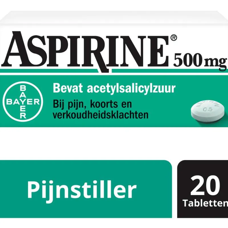Aspirine is één van de bekendste merken onder de pijnstillers en het alleroudste middel van Bayer. Aspirine heeft een pijnstillend, koortsverlagende ontstekingsremmend effect. Aspirine bevat acetylsalicylzuur en behoort tot de pijnstillergroep NSAID’s (Non-Steroidal Anti-Inflammatory Drugs). NSAID’s hebben een krachtiger pijnstillend effect dan bijvoorbeeld paracetamol. Bij niet-bacteriële infecties is een NSAID zoals acetylsalicylzuur bijzonder geschikt vanwege de ontstekingsremmende en koortsverlagende werking.Aspirine kan worden gebruikt bij bijvoorbeeld rugpijn, gewrichtspijn, nek- of schouderpijn en kiespijn, hoofdpijn, spierpijn en klachten door griep en/of koorts of verkoudheid.