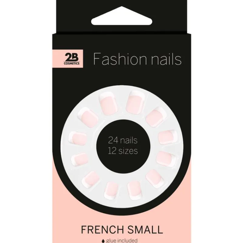 2B Fashion Nails French SmallMooie en comfortabele kunstnagels. Inclusief nagellijm. 24 nagels in 12 verschillende maten. Met de 2B Fashion Nails French Small geniet je tot wel 7 dagen van mooie en comfortabele kunstnagels. De nagels zijn flexibel bij de nagelriem, zodat ze niet in je huid drukken en hebben een sterke tip om afbreken te voorkomen. Doordat elk van jouw eigen nagels uniek is bevat deze verpakking 24 nagels in 12 verschillende maten, dan heb je altijd de juiste bij de hand. Ook handig, deze French manicure set wordt geleverd met een tube lijm.