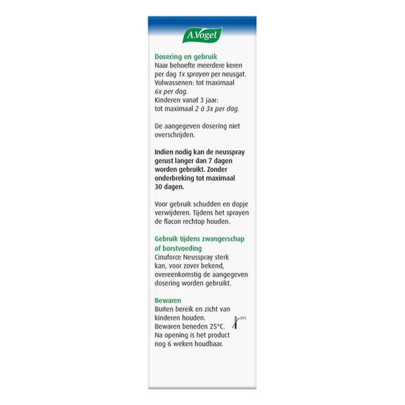 Naar behoefte meerdere keren per dag 1x sprayen per neusgat. Volwassenen: tot maximaal 6x per dag. Kinderen vanaf 3 jaar: tot maximaal 2 à 3x per dag. Tot maximaal 30 aaneengesloten dagen te gebruiken.