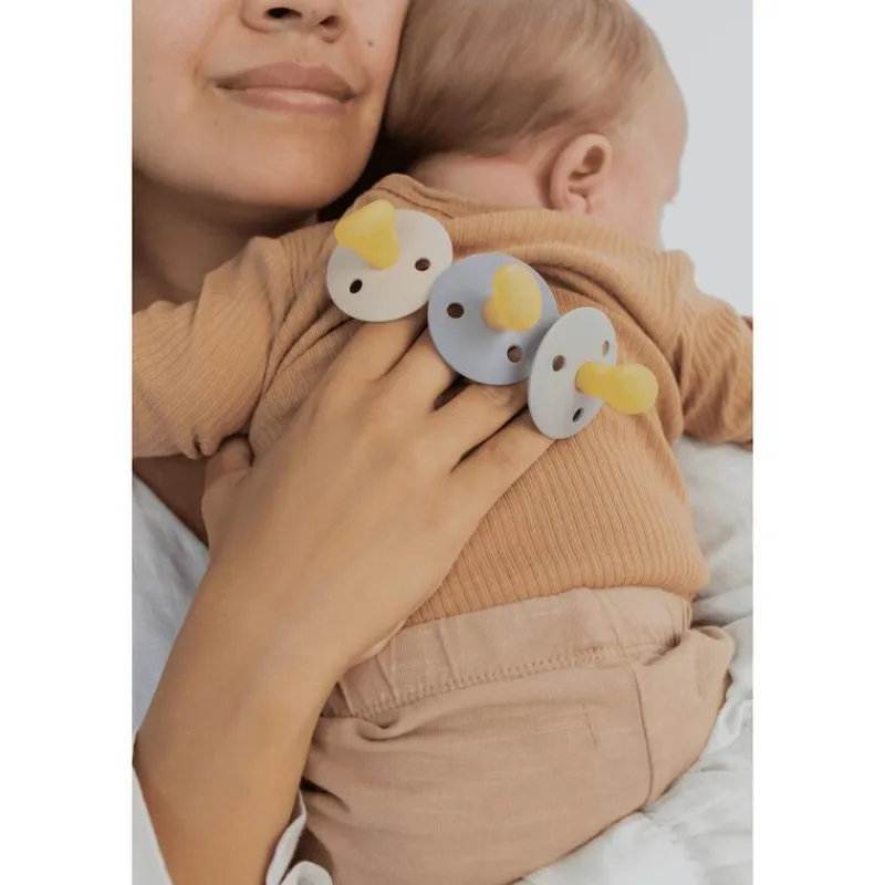De kersvormige speen en het matte lichtgewicht schild zijn ontworpen om de vorm vaneen moederborst na te bootsen BIBS Colour is de originele BIBS fopspeen en is al meer dan 40 jaar op de markt. Het heeft het kenmerkende ronde BIBS-schild met drie ventilatiegaten en een ronde BIBS-gegraveerde handgreepring. Het schild is zorgvuldig ontworpen om weg te buigen van de gevoelige en gevoelige huid rond de mond van de baby om vochtophoping te voorkomen. Het schild is gemaakt van food-grade materiaal.