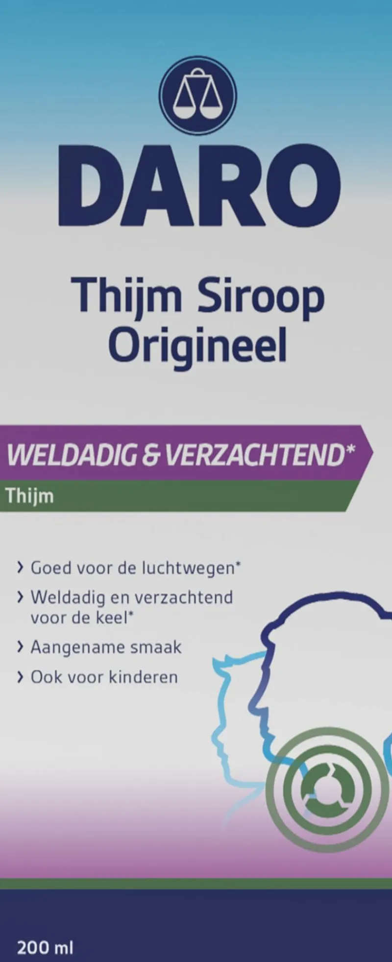 Daro Thijmsiroop Origineel 200ml: Goed voor de luchtwegen. Weldadig en verzachtend voor de keel. Aangename smaak. Ook voor kinderen.