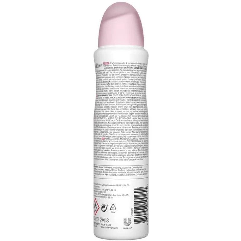 Dove Go Fresh Pomegranate anti-traspirant spray met de heerlijke frisse, pittige geur van granaatappel gecombineerd met een vleugje citroen verbena.