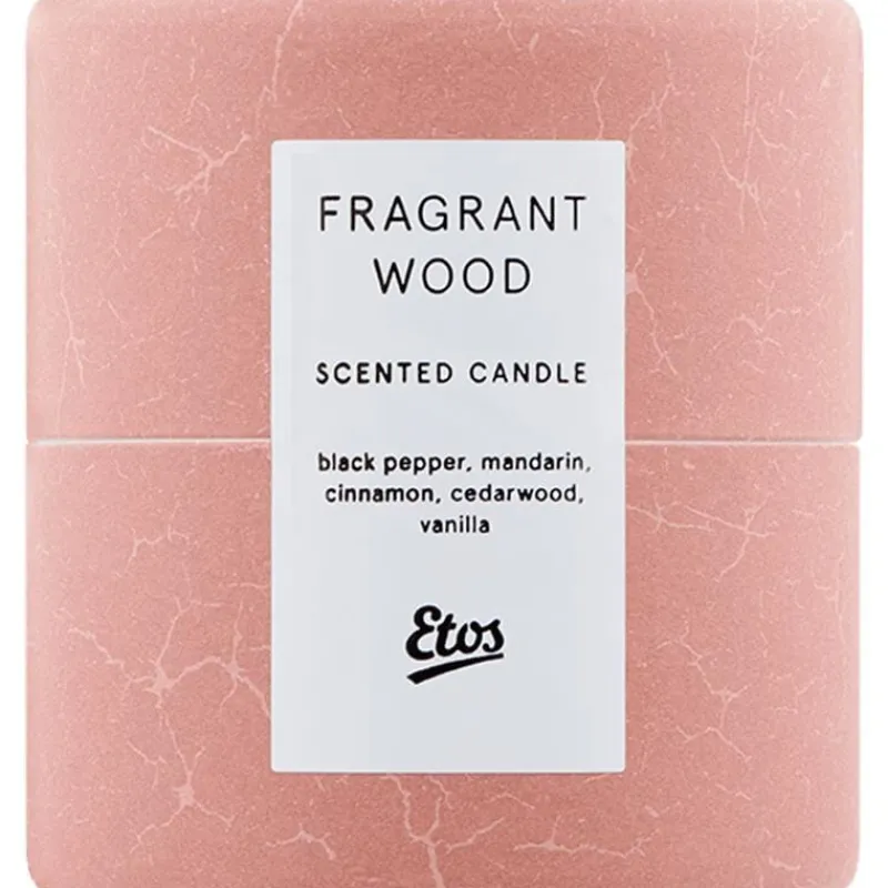 Etos geurkaars Fragant Wood geeft een warme houtachtige geurbeleving.