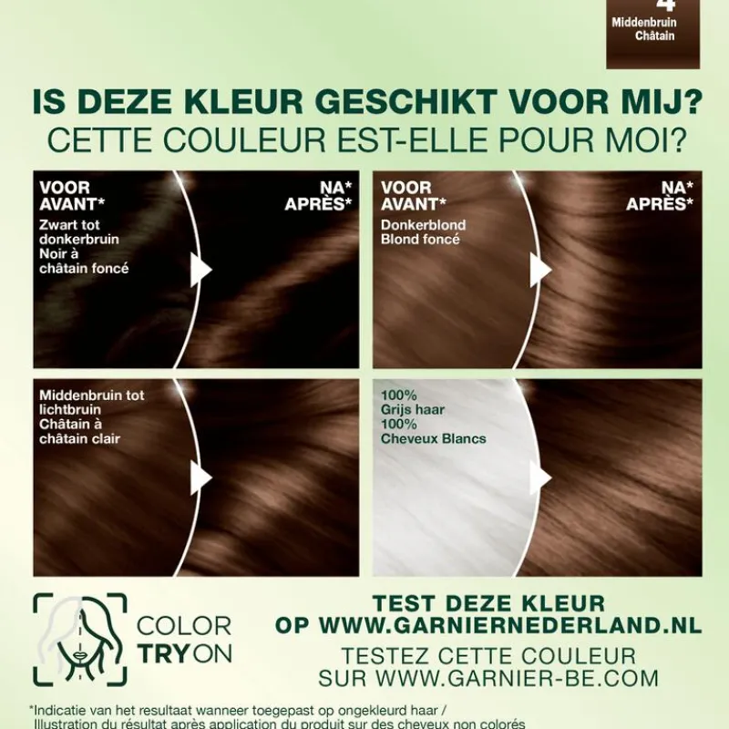 Voorzorgsmaatregelen: Doe een allergie waarschuwingstest 48 uur vóór iedere haarkleurbehandeling ook indien je al eerder een kleurproduct hebt gebruikt. In de gebruiksaanwijzing in de verpakking staat beschreven hoe je dit doet. Volg tijdens het kleuren de gebruiksaanwijzing nauwkeurig op. HOEVEEL VERPAKKINGEN HEB IK NODIG? Heb je kort haar of haar tot op je schouders? Dan is één verpakking voldoende. Bij halflang tot lang haar heb je twee verpakkingen nodig.