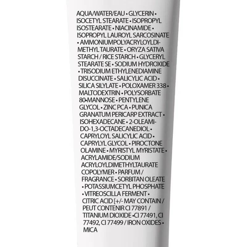 AQUA / WATER / EAU • GLYCERIN • ISOCETYL STEARATE • ISOPROPYL ISOSTEARATE • NIACINAMIDE • ISOPROPYL LAUROYL SARCOSINATE • AMMONIUM POLYACRYLOYLDIMETHYL TAURATE • ORYZA SATIVA STARCH / RICE STARCH • GLYCERYL STEARATE SE • SODIUM HYDROXIDE • TRISODIUM ETHYLENEDIAMINE DISUCCINATE • SALICYLIC ACID • SILICA SILYLATE • POLOXAMER 338 • MALTODEXTRIN • POLYSORBATE 80 • MANNOSE • PENTYLENE GLYCOL • ZINC PCA • PUNICA GRANATUM PERICARP EXTRACT • ISOHEXADECANE • 2-OLEAMIDO-1,3-OCTADECANEDIOL • CAPRYLOYL SALICYLIC ACID • CAPRYLYL GLYCOL • PIROCTONE OLAMINE • MYRISTYL MYRISTATE • ACRYLAMIDE/SODIUM ACRYLOYLDIMETHYLTAURATE COPOLYMER • PARFUM / FRAGRANCE • SORBITAN OLEATE • POTASSIUM CETYL PHOSPHATE • VITREOSCILLA FERMENT • CITRIC ACID