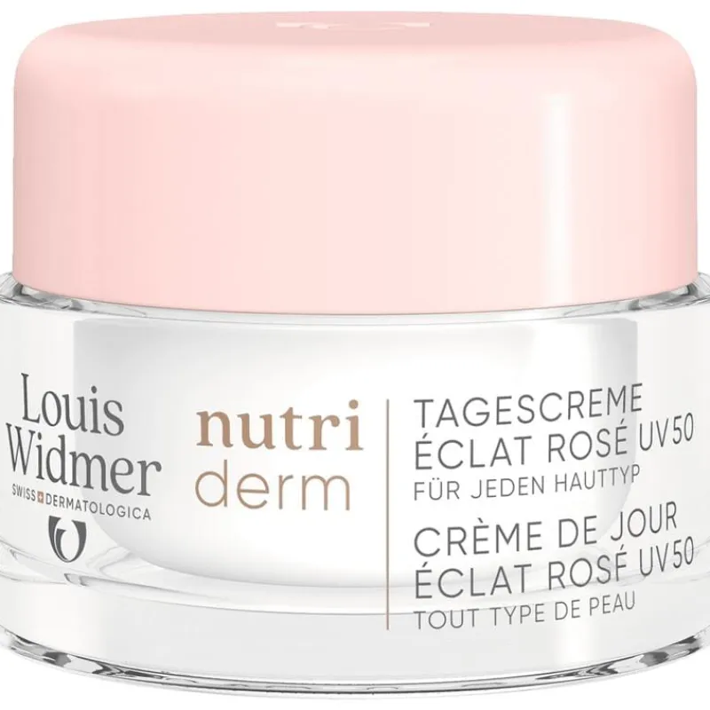 Louis Widmer nutriderm Dagcrème Éclat Rosé UV 50 is een voedende dagcrème met hoge UV-bescherming en Gatuline® Radiance.