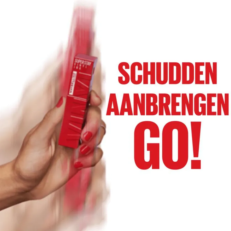 Geef je longwear een boost met SuperStay Vinyl Ink van Maybelline New York. De langhoudende liquid lipstick zorgt voor sterk gepigmenteerde, intense kleur en vinyl glans zonder af te geven en blijft tot 16 uur zitten. De vegan* Color Lock formule van deze lippenstift vlekt niet, geeft niet af en zorgt een onmiddellijke glans. Schudden voor 5 seconden voor gebruik. Breng aan op schone, droge lippen. laten drogen en ready to go! Verkrijgbaar in 10 vinyltinten geïnspireerd door de gedurfde en gewaagde stijl van New York City. Van felle roze kleuren tot diepe roodtinten en alledaagse neutralen, laat je zien met Maybelline langhoudende lipkleuren.