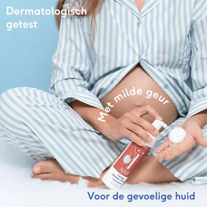Zwanger zijn: voor de een een feest, voor de ander toch best spannend en soms stressvol. Pak een momentje voor jezelf met Naïf Verzorgende Doucheschuim. Dit doucheschuim zorgt voor een fijne schuimlaag, waardoor je huid zacht en fris aanvoelt. Met de warme geur van jasmijn en cederhout verandert je douche in een momentje van ontspanning. Geformuleerd voor de (gevoelige) huid van de zwangere vrouw, gemaakt met ingrediënten van natuurlijke oorsprong en zonder etherische oliën. Met glycerine om je huid zacht te reinigen en hydrateren. Zorg goed voor je (veranderende) lichaam voor, tijdens, en na de zwangerschap.