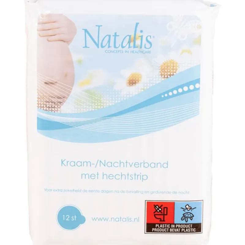 Het Natalis kraamverband is van extra zachte kwaliteit en is gemaakt van hypoallergeen nonwoven materiaal, dat nauwelijks verkleeft. De absorberende kern is van pulp. De onderzijde is voorzien van een speciale folielaag tegen doorlekken.