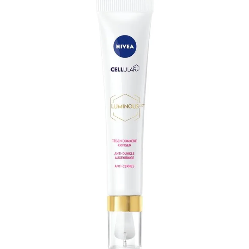Ontdek de ultieme verzorging tegen donkere kringen en wallen met NIVEA CELLular LUMINOUS630 Oogcontourcrème. Deze effectieve oogcrème verzorgt de gevoelige huid rond de ogen en gaat de strijd aan tegen wallen en donkere kringen. Geniet van een verlichte en jeugdig ogende oogcontour, met zichtbaar minder donkere kringen onder de ogen binnen 4 weken*. Deze NIVEA oogcrème is het baanbrekende resultaat na 10 jaar nauwgezet onderzoek en het screenen van 50.000 ingrediënten. Dit zorgde voor de ontdekking van LUMINOUS630, een stof die pigmentatie op cellulair niveau in evenwicht brengt. De NIVEA CELLular LUMINOUS630 Oogcontourcrème, met LUMINOUS630, balanceert de pigmentatie en verlicht donkere kringen, terwijl cafeïne wallen vermindert. Het hyaluronzuur hydrateert en verstevigt de huid, waardoor fijne lijntjes en rimpels verminderen. Gebruik samen met NIVEA Anti-spot Luminous serum voor optimale resultaten. *Product gebruikstest, 41 vrouwen, 12 weken. • Maakt wallen zichtbaar kleiner • Verlicht en verkwikt donkere kringen onder de ogen • Verjongt de oogcontour en vermindert rimpels en fijne lijntjes • Hydrateert en verzorgt de kwetsbare huid onder de ogen • Geschikt voor alle huidtypen