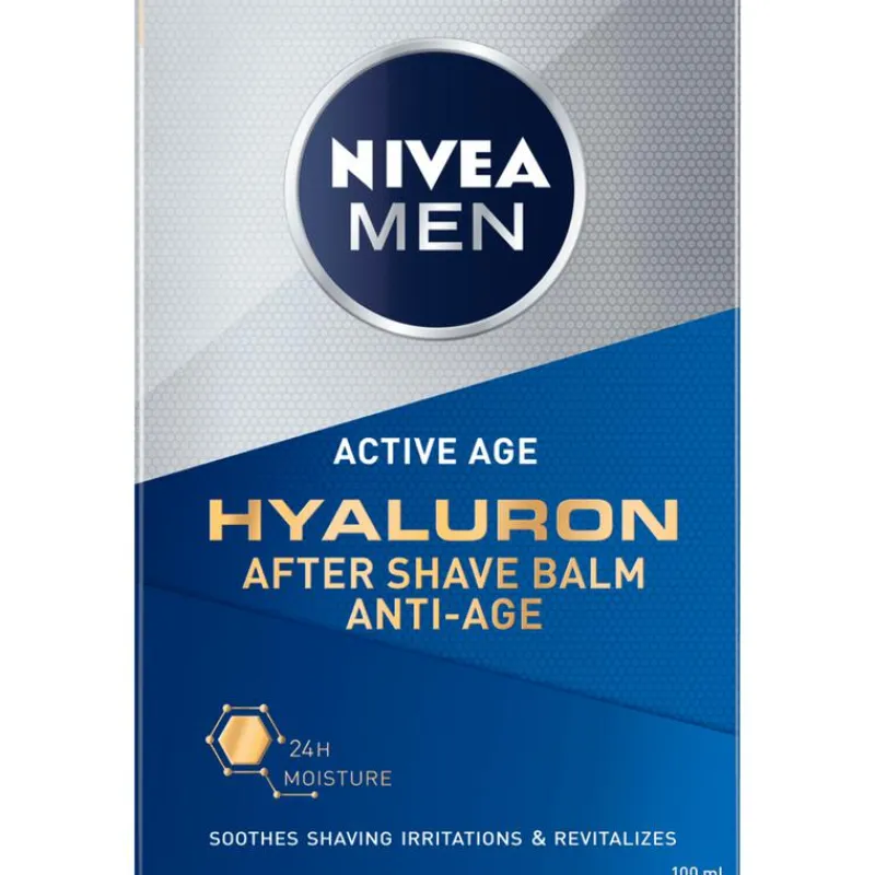 NIVEA MEN Anti-Age After Shave Balsem met hyaluronzuur is een ideaal verzorgingsproduct voor mannen voor een gezonde en frisse look. Geniet van het anti-age effect met hyaluronzuur. Deze balsem verzacht de huid onmiddellijk na het scheren, en verfrist en revitaliseert.