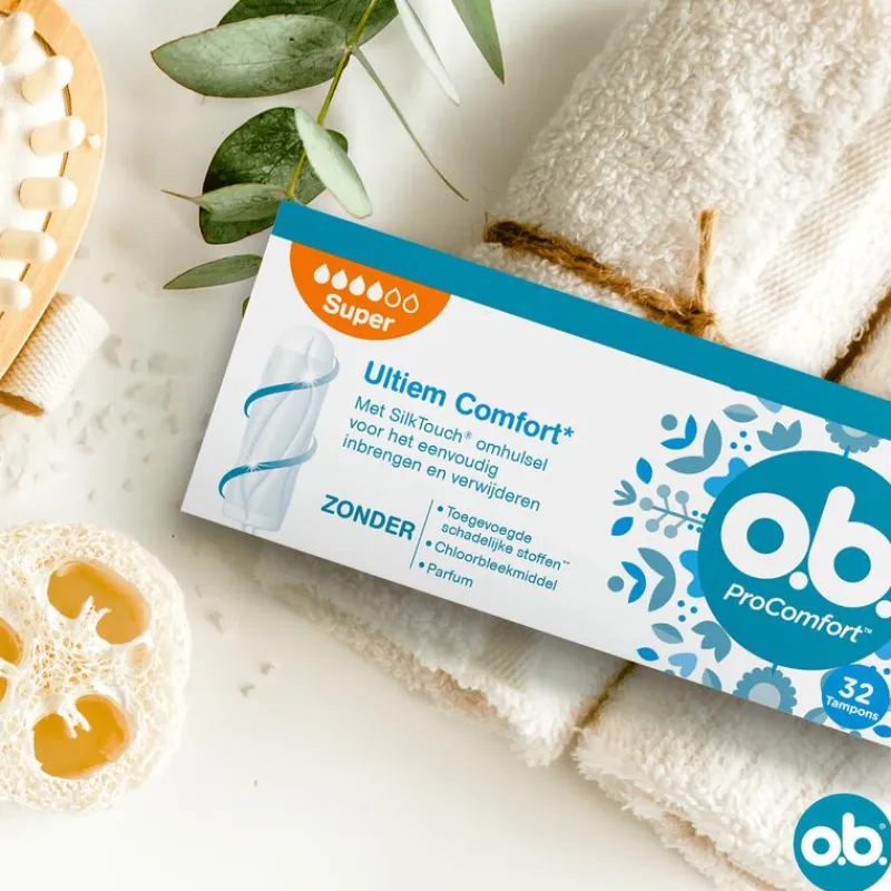 o.b.® ProComfort® Super tampons zijn geschikt voor de zwaardere menstruatiedagen.