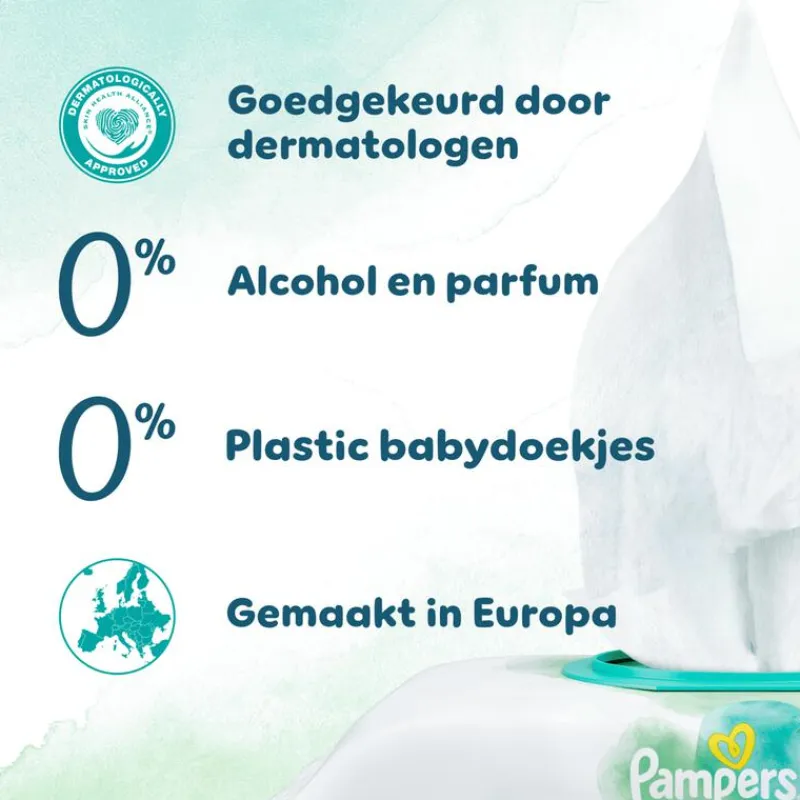 ZMilde verzorging en bescherming voor de gevoelige huid van je baby. Pampers Harmonie New Baby doekjes zijn zachter dan alleen water en wattenschijfjes. Dankzij hun speciale formule helpen de zachte huidreinigende en beschermende bestanddelen om de natuurlijke pH-waarde van de huid te herstellen en ze te beschermen tegen irritatie. Ze zijn gemaakt met 0% alcohol of parfum. De formule is dermatologisch getest. Ze is goedgekeurd door de dermatologen van de Skin Health Alliance en Standard 100 gecertificeerd door OEKO-TEX.
