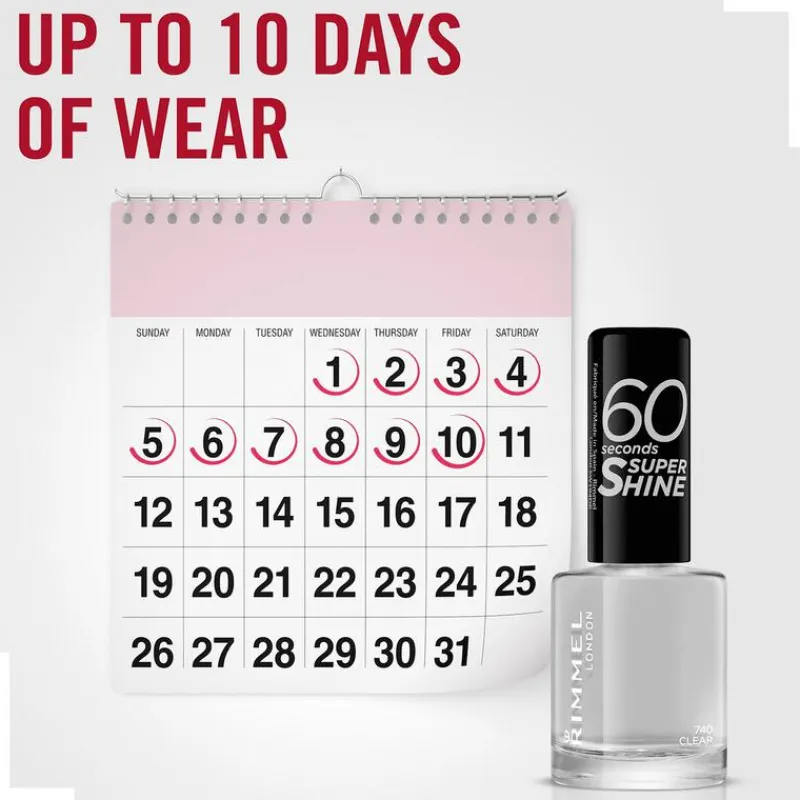 Verlies geen tijd meer met de Rimmel London 60 Seconds Super Shine Nagellak. De speciale 3-in-1 technologie bevat een nagellakkleur, een beschermende base- en ultra glanzende top coat finish. Dé enige echte nagellak die snel droog is en je nagels een verzorgde uitstraling geeft!