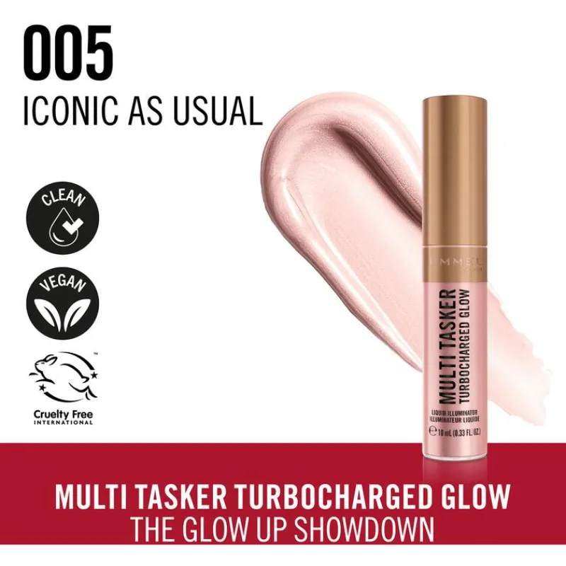 De Multi Tasker Turbocharged Glow Liquid Illuminator zit boordevol lichtreflecterende parels en vitamine C en E – ideaal om altijd en overal een gezonde, stralende glow te creëren.