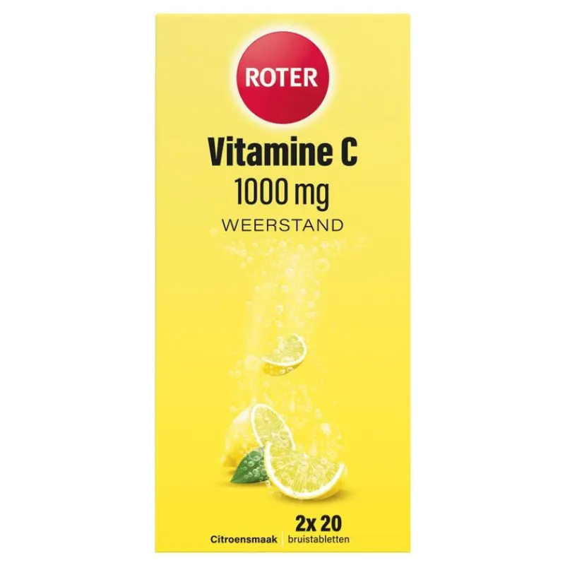 Roter Vitamine C Bruis 1000 mg ondersteunt de natuurlijke weerstand met een hoge dosis vitamine C. Vitamine C kan je lichaam niet zelf aanmaken. Je moet deze vitamine via voeding binnenkrijgen. Vitamine C zit in groenten, fruit en aardappelen. Vitamine C ondersteunt je natuurlijke weerstand en is nodig voor de vorming van bindweefsel en de opname van ijzer. Vitamine C is een antioxidant, die de weerstand ondersteunt. Het draagt bij aan de bescherming van gezonde cellen en weefsels tegen vrije radicalen. Vitamine C is ook van belang voor het zenuwstelsel en kan het helpen vermoeidheid te verminderen. Inname van vitamine C bevordert de energiestofwisseling en verhoogt het ijzergehalte in het bloed. Vitamine C heeft een positief effect op de weerstand tijdens en na lichamelijke inspanning.