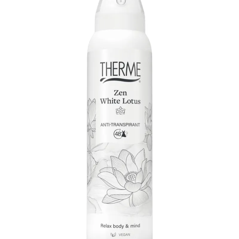 Therme Zen White Lotus Anti Transpirant biedt 48 uur effectieve bescherming tegen transpiratiegeur en vochtvorming. Geniet van de serene geur van witte lotus gecombineerd met aromatische jasmijn en subtiele witte musk.
