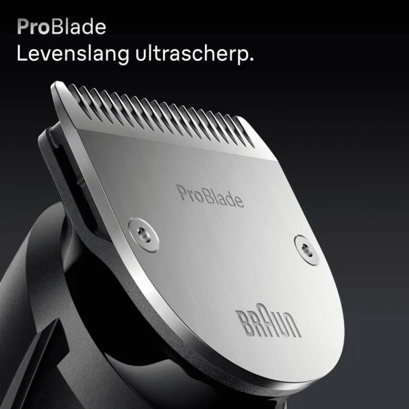 Braun’s Baardtrimmer Series 7, ontworpen voor professionele precisie en perfectie bij elke beweging. Met het levenslange ultra scherpe ProBlade en AutoSense-technologie, grijpt deze trimmer zelfs de lastigste haren. Geen fouten meer met PrecisionLock en een vlekkeloze stijlcontrole met 40 lengte-instellingen. Of je nu trimt, scheert, afwerkt of detailleert, deze trimmer biedt de beste tools voor perfecte lijnen, fades en afwerkingen.