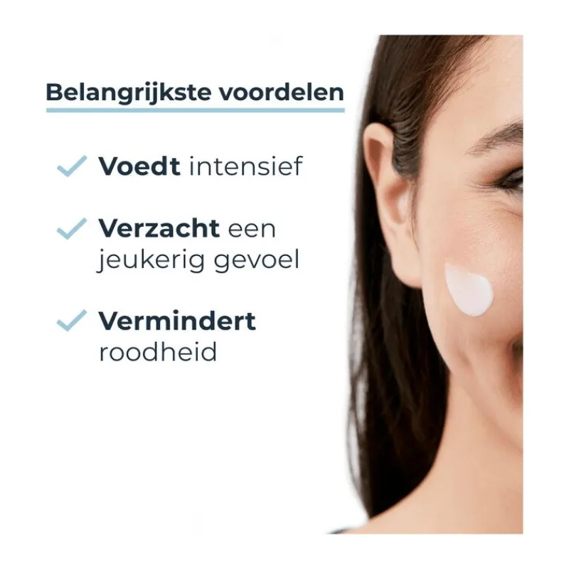 De AtopiControl Kalmerende Gezichtscrème is een gezichtscrème die de eczeemgevoelige huid kalmeert. De verzorgende crème is ongeparfumeerd en geschikt voor dagelijks gebruik (geen flare ups). De formule bevat 12% omega-oliën en Licochalcone A. Er is klinisch bewezen dat deze crème geschikt is voor de huid met neiging tot eczeem en kan worden gebruikt bij kinderen en baby’s ouder dan drie maanden.