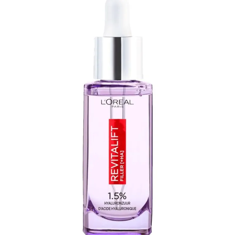 L’Oréal Paris Revitalift Hyaluronzuur Filler Serum – Anti Rimpel Gezichtsverzorging – 30 ml Een gezichtsserum voor een intense hydratatie en een soepelere en gladdere huid Productbeschrijving Revitalift Hyaluronzuur Filler serum van L’Oréal Paris hydrateert en geeft de huid veerkracht. Met 1,5% Hyaluronzuur heeft dit serum de hoogste concentratie hyaluronzuur van alle L’Oréal Paris serums en is daardoor een ware boost voor je huid. Verbetert aanzienlijk de veerkracht en stevigheid van de huid Helpt zichtbaar bij het verminderen van rimpels Een ware boost voor de huid Geschikt voor alle huidtypes Met een extra hoge concentratie hyaluronzuur van 1,5% Met de handige pipet kan de hoeveelheid serum precies naar wens gedoseerd worden Hyaluronzuur is een krachtige hydrator. Het beschermt de huid, laat het er voller uitzien en vermindert de zichtbaarheid van fijne lijntjes en rimpels. Hyaluronzuur is een lichaamseigen stof, die de vochthuishouding in de huid ondersteunt. Verrijkt met 0,5% macro-hyaluronzuur moleculen om de huid te hydrateren en 1% micro-hyaluronzuur moleculen om rimpels aanzienlijk op te vullen waardoor de huid steviger en strakker oogt. Naast hydratatie speelt hyaluronzuur ook een belangrijke rol bij wondheling en huidherstel. Het resultaat Direct: De huid is intens gehydrateerd, lijkt zichtbaar voller, soepeler en gladder Na een week: De veerkracht van de huid lijkt aanzienlijk vernieuwd, oogt steviger en strakker