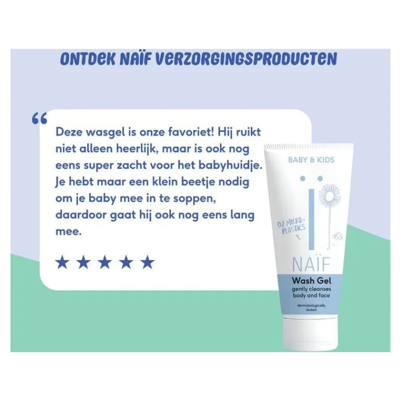 Naïf Wasgel voor Baby & Kids reinigt mild met ingrediënten van natuurlijke oorsprong. Omdat water de huid kan uitdrogen, gebruiken wij afgeleiden uit kokosolie voor een subtiel schuim. Geschikt dus voor de gevoelige en droge (baby)huid, met een verzorgde, gehydrateerde huid als resultaat. Nu in extra grote fles, met een handige pomp. Zo kom je nooit sop óf handen te kort. Oh en hadden we al gezegd dat ‘ie heerlijk ruikt?