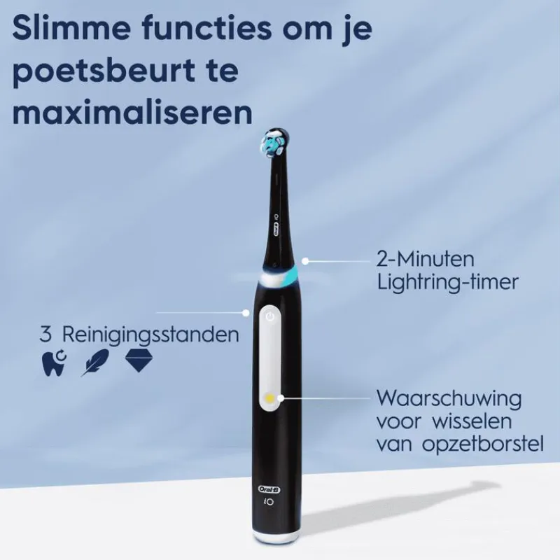 - Bescherm uw tandvlees met iO poetsdruksensor van Oral-B, de enige die aangeeft of u de perfecte poetsdruk aanbrengt voor een effectieve en veilige reiniging