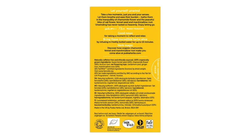 - Pukka is aangesloten bij 1% for the Planet. Dit product is Fair for Life & Fair Wild gecertificeerd.