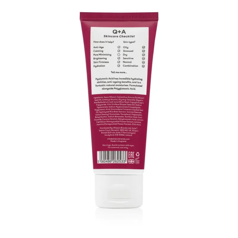 De Q+A Hyaluronic Acid Moisturizer is een super hydraterende moisturizer, perfect voor het verstevigen en voeden van een droge huid! Deze formule zit boordevol hydraterende ingrediënten, ontworpen om niet alleen diep te hydrateren, maar je ook te verzekeren van een consistent zachte, jeugdige en beschermde huid.