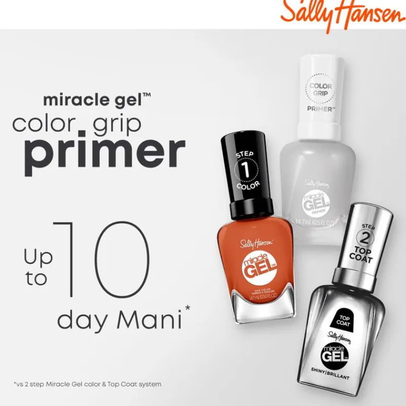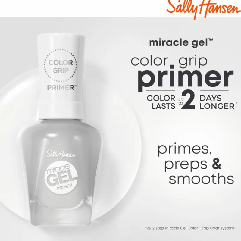 Sally Hansen Miracle Gel® Color Grip Primer is een onzichtbare primer die de nagels voorbereidt voor optimale hechting van de kleur. Verleng de houdbaarheid van je manicure met tot wel 2 extra dagen kleur en glans, voor een manicure die tot 10 dagen blijft zitten*.