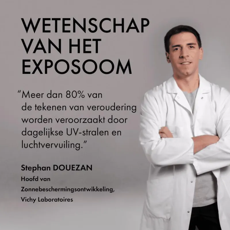 - Vermindert zichtbare tekenen van veroudering door blootstelling aan de zon, zoals pigmentvlekken, rimpels en een gebrek aan stevigheid