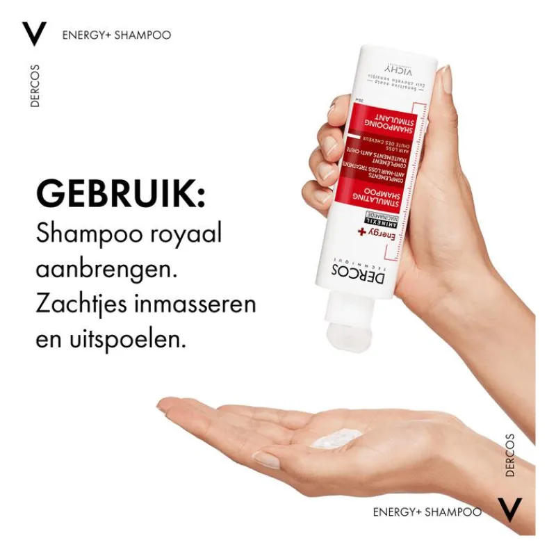 De Energy + Shampoo van Vichy Dercos Technique is ontworpen voor mannen en vrouwen die kampen met lichte tot vergevorderde haaruitval. Het is de enige shampoo met Aminexil van Vichy, een van de voornaamste cosmetische moleculen in de strijd tegen haaruitval. De effecten van deze shampoo zijn klinisch bewezen in 2 studies.