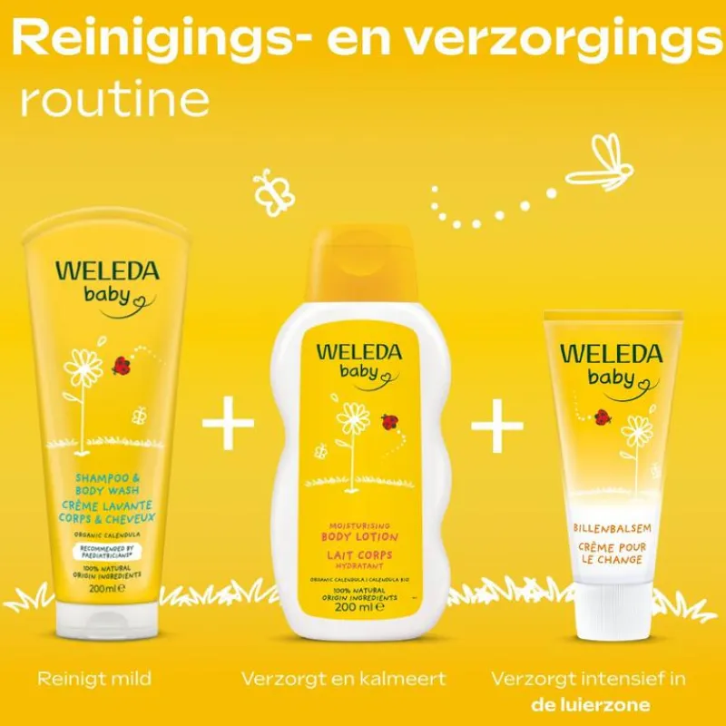 Weleda Babyverzorging met biologische Calendula verzorgt, kalmeert en beschermt vanaf de eerste dag. Goed voor je baby en de planeet.