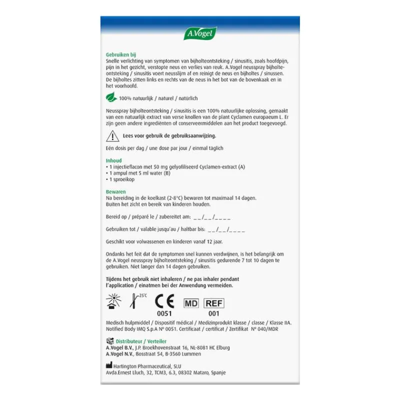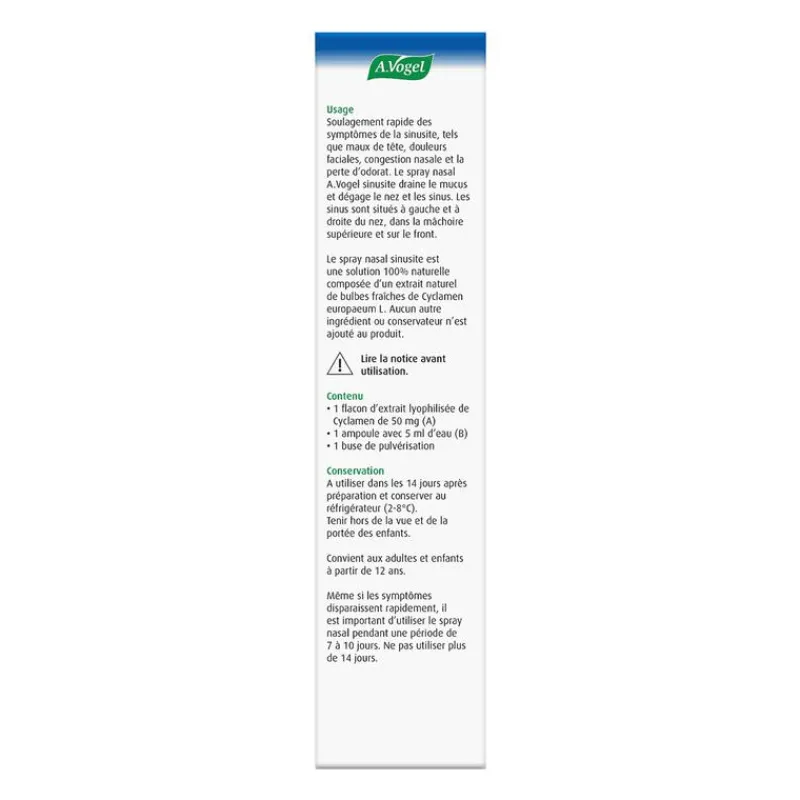Snelle verlichting van symptomen van bijholteontsteking / sinusitis, zoals hoofdpijn, pijn in het gezicht, verstopte neus en verlies van reuk. A.Vogel neusspray bijholteontsteking / sinusitis voert neusslijm af en reinigt de neus en bijholtes / sinussen. De bijholtes zitten links en rechts van de neus in het bot van de bovenkaak en in het voorhoofd.