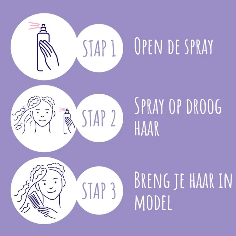 Spuit de gelspray gelijkmatig over handdoekdroog haar en föhn je haar. Om je krullen extra te accentueren, spray je de gel over droog haar en kneed je vervolgens je haar vanonder. Voor extra mooie krullen föhn je je haar op zijn kop met een diffuser. Dit is een opzetstuk voor je föhn, speciaal voor krullend haar. Hydrateren is een must voor mooie krullen. Gebruik daarom een voedende Andrélon conditioner en doe regelmatig een masker in je haar, zoals het Andrélon Perfecte Krul Haarmasker. Probeer ook eens de Pink Beachy Texture Sea Salt Spray voor golvende krullen.