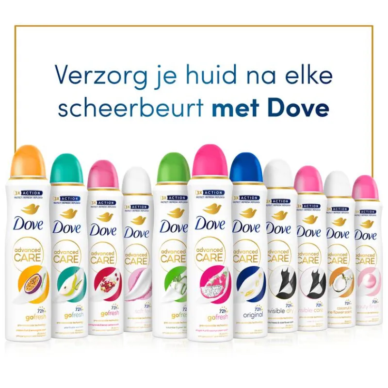 Dove Advanced Care Matcha Green Tea Anti-Transpirant Deodorant Spray helpt de huid na het scheren te herstellen en biedt tot 72 u bescherming tegen zweet en lichaamsgeur.