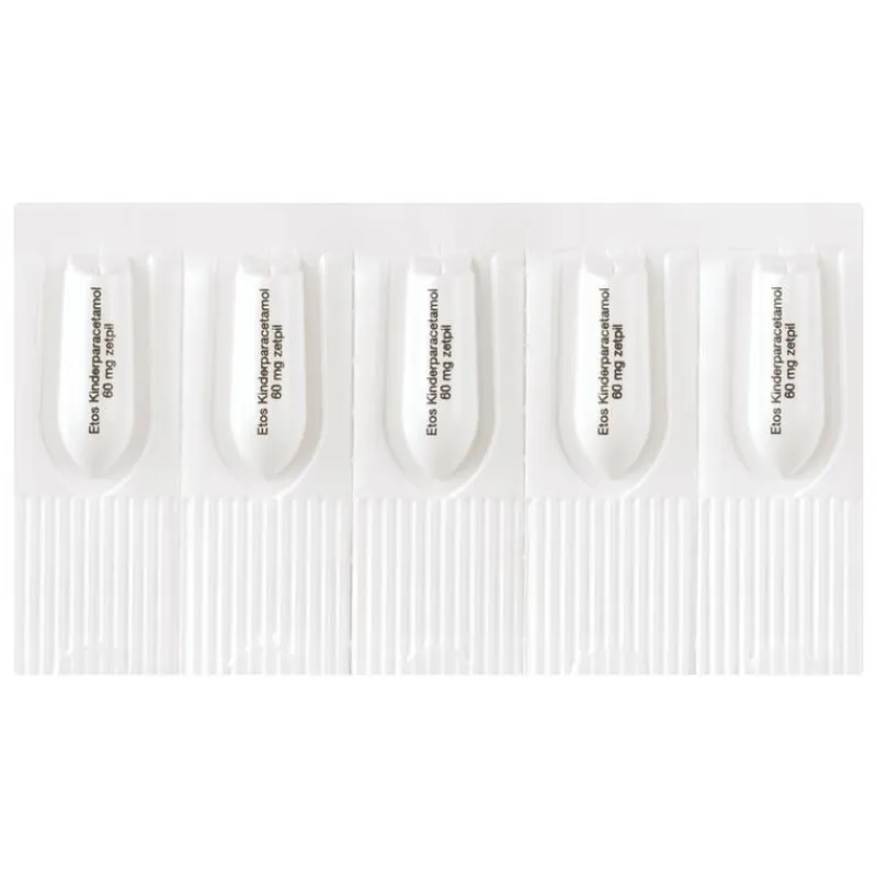 Etos Kinderparacetamol 60 mg zetpil kan je gebruiken bij kinderen van 3 maanden tot 1 jaar (lichaamsgewicht 3,0 – 5,5 kg). Etos Kinderparacetamol 60 mg behoort tot de groep van medicijnen met een pijnstillende en koortsverlagende werking.