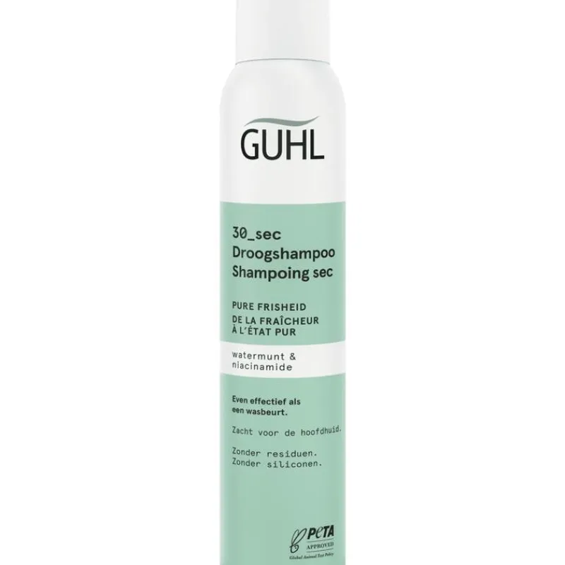 De Guhl 30 sec. Pure Frisheid Droogshampoo bevat een uiterst effectieve reinigingsformule met watermunt en niacinamide. De droogshampoo verfrist je haar zichtbaar in slechts 30 seconden en geeft je hoofdhuid rust tussen de wasbeurten door.
