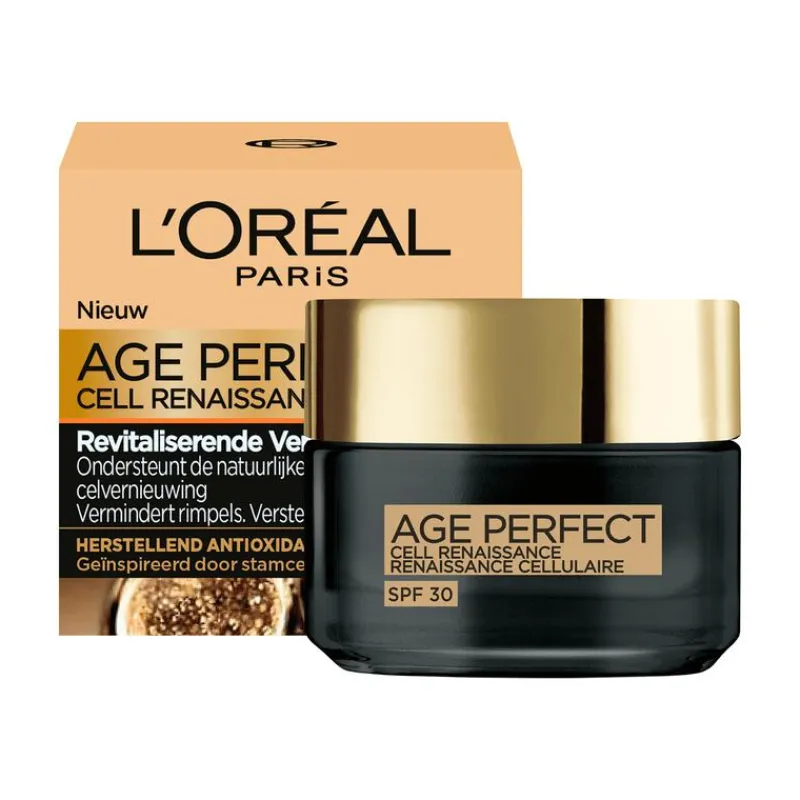 L’Oréal Paris Age Perfect Cell Renaissance Revitaliserende Verzorging dagcrème SPF 30 bevat een Herstellend Antioxidantcomplex met neohesperidine en vitamine E die zorgt voor een zachtere, stevigere en stralende huid. Effectief tegen rimpels.