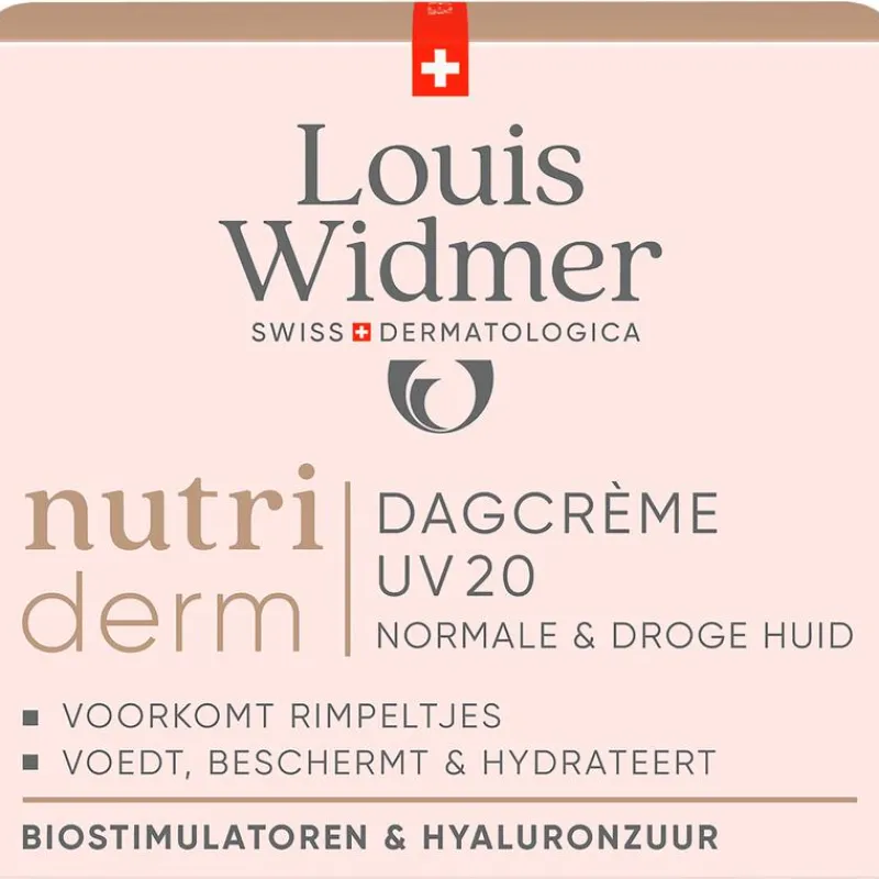 Louis Widmer nutriderm Dagcrème UV 20 is een dagcrème met UV-bescherming en hyaluronzuur.