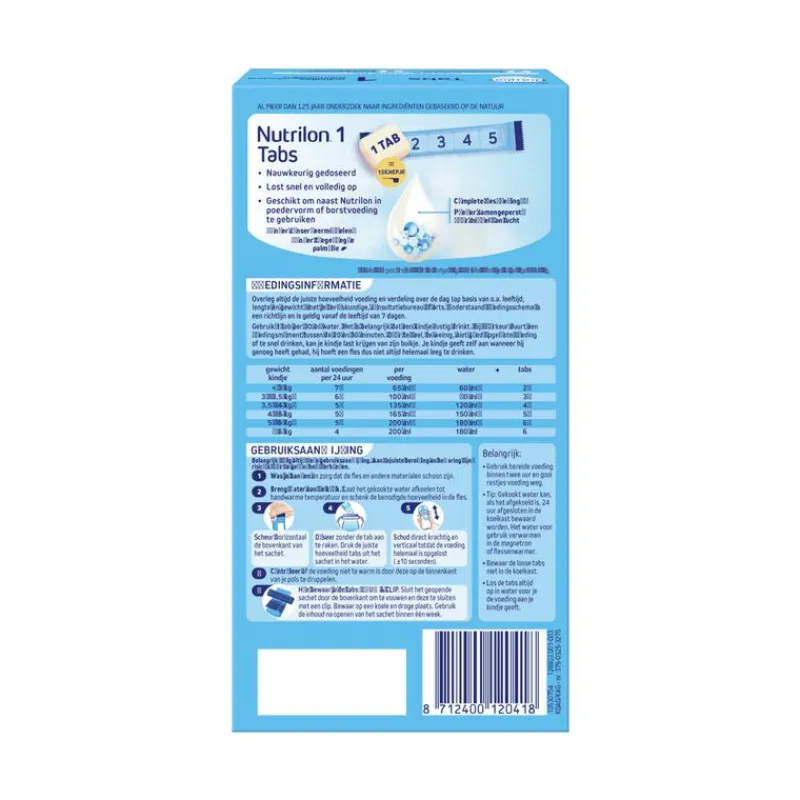 Nutrilon Tabs 1 is een volledige zuigelingenvoeding op basis van melk, geschikt vanaf de geboorte. Borstvoeding is de beste voeding voor je baby.