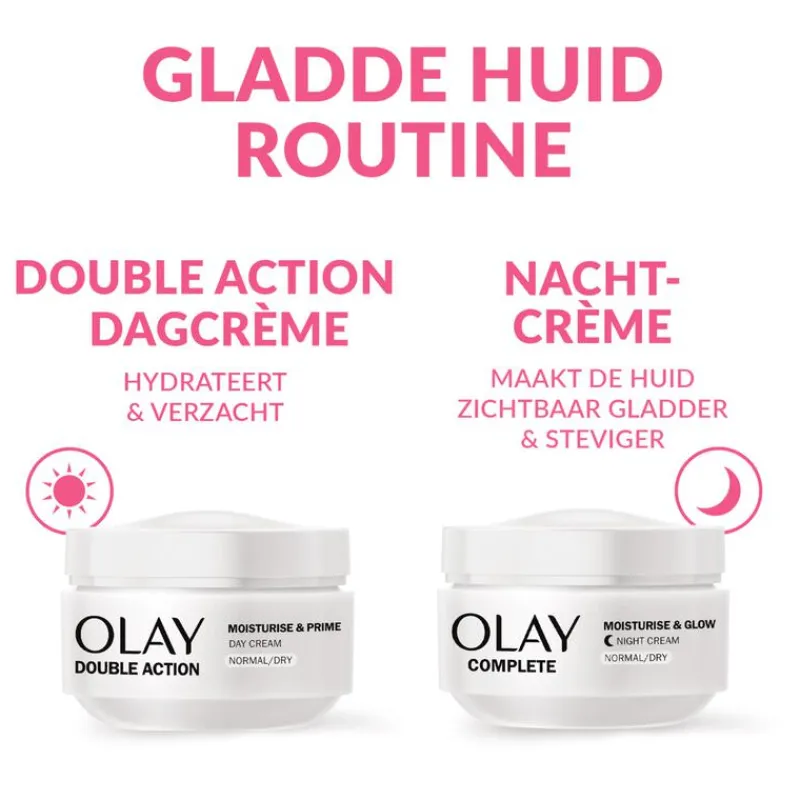 Voor een zachtere, gladdere, mooiere en gezond uitziende huid. Olay Double Action dagcrème en primer biedt je elke dag lichtgewicht hydratatie en houdt vocht vast. Door de niet-vette formule is het een ideale basis voor make-up. Olay gaat over schoonheid, van binnen en van buiten. Probeer deze dagcrème en vochtinbrengende primer als eerste stap in je huidverzorgingsroutine.