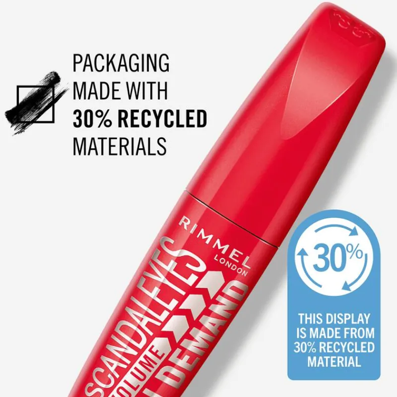 Bepaal jouw wimperlook met de nieuwe Scandal’Eyes Volume On Demand Black 001 Mascara van Rimmel London! ‘Get ready for Volume On Demand’. Rimmel introduceert Scandal’Eyes Volume On Demand, de nieuwe mascara voor een continu in verschillende laagjes op te bouwen volume. Je zult versteld staan van het perfect separerende borsteltje dat elke wimper bereikt, dekt en separeert. Het borsteltje heeft een golvende vezeltechnologie die het mogelijk maakt groter volume te creëren. Met de Volume On Demand Mascara heb je zelf de controle om je wimperlook te bepalen, wat je plannen ook zijn! Zin in een simpele look? Breng een subtiel laagje aan. Zin in wat uitdagends? Breng meerdere lagen aan. Behoefte aan een boost? Frame je look. De keuzes zijn eindeloos met Rimmel’s Scandal’Eyes Volume On demand Mascara!