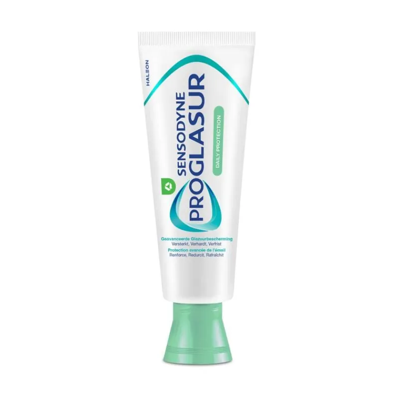 Sensodyne Proglasur Daily protection met een unieke, geoptimaliseerde fluoride-formule, versterkt en verhard de tanden door verzwakt glazuur opnieuw te mineraliseren en diep in de tand door te dringen*.